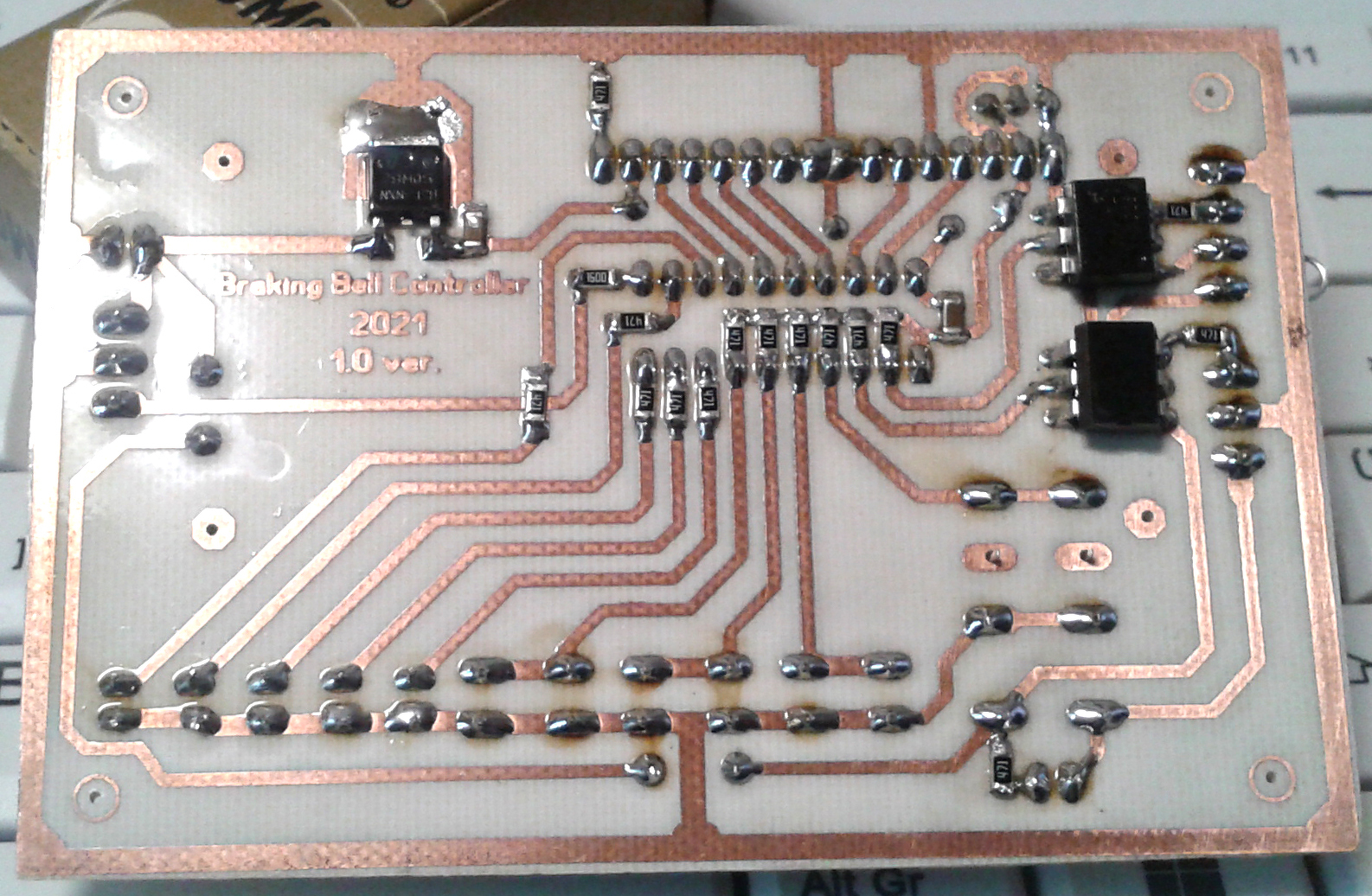 Elég volt maximum háromszor átengedni rajta. Elsőre ráragadt a papír, majd még egyszer vagy kétszer átküldtem rajta 90 fokkal vagy 45-el elforgatva. Utána hagytam kihűlni levegőn, majd langyos vízbe raktam 10 percre az egészet, akkor fellazult és egyből leázott róla a vastag papírréteg, a fehér maradványt újjal dörzsöltem le, a kis távolságok között pedig óvatosan körömmel vagy éles műanyaglapkával piszkáltam ki. 105-135g-os műnyomó papírt használtam. Sósav-hidrogénperoxidban marattam. A 1206-os és SO tok gyerekjáték volt. Egyszer egy mérőműszert akartam csinálni de csak úgy rémlik TSSOP tokban volt cél IC. Ennek kb. 0,2mm széles a lába és 0,4mm a távolság. Volt rajta kettő ilyen, egy 40-50 lábú PIC és az egész kétoldalasba kellett. De összejött 2-3 próbálkozásra. Tűhegyű pákával tudtam csak megforrasztani kizárólag nagyító alatt. Szóval a laminálót és a hőfokszabályzást mindenkinek ajánlom, aki vasalt eddig. Ja és normál üvegszálas nyákot használtam, mennyi az 1,5mm? Most eszembe jutott, hogy a hengerek alumínium U profilban voltak, abban volt a lapos fűtőszál, de a hengereket kétoldalt valami hőálló műanyag tartotta. Talán a tengely helyén kellett egy minimálisat reszelni, hogy ne csak papírlaphoz legyen jó. A hozzászólás módosítva: Jan 15, 2025