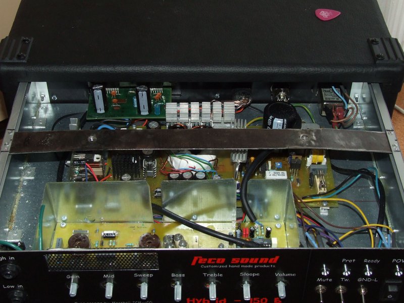 Fél gain felett ha belecsapsz, akkor "beröffenhet" , ha feljebb tekered akkor már rendesen tortyog. Csutka gain-nel (szólógitárral) olyan overdrájvos hangja van, de azért még lehet vele dinamikázni, tehát nem az a sűrű kása hangzás. Ez persze hangszerfüggő is, sok múlik a gitár kimenő jelszintjén. Ez egy egyszerű kis előfok, de jó hangzásokat lehet kitekergetni rajta. A MID és SWEEP potikkal a közepet lehet alakítgatni, a SLOPE pedig egy szabályozható felüláteresztő, a többi meg egyértelmű. Írásban nem érdemes ecsetelgetni, hallanod, próbálgatnod kéne. Nekem nagyon bejött. Bevállt 400-as végfokom az nincsen, csak olyan kapcsolásom, amit többen is dicsérnek. Bővebben: Link Valószínűleg ezt, vagy valamelyik variánsát építem meg, merthogy több is van. +/- 75 - 80V -ról fog menni, 400W/8 Ohm a célteljesítmény, aztán majd kiderül hogy mit tud.