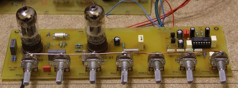 A Quad, az nem éppen hangszer végfoknak való, elég lomha, puha hangot ad (szerintem). Először én is egy 1000 éve összerakott (sosem használt) Urbán féle quadot próbáltam a kombóhoz, de hamar félre is dobtam. A quad helyett érdemes lenne kipróbálnod egy hidalt TDA 7294-et. A nagy cucchoz majd egy 400-as nmos véget fogok összedobni, a kapcsolótáp már készül hozzá. Nem nagy ördöngősség a csöves előfok, csak a tápja bonyolultabb egy kicsit. A Marshall bass cuccokat én sem szeretem, de ez a kapcsolás (rajz mellékelve, plusz egy kép a panelról) megtetszett és kellemeset csalódtam benne. Nagyon megállja a helyét. Alacsony a zaja, feszes dinamikus, tiszta hangja van és "morgós" is tud lenni ha kell. A hangszín szabályzója sem a standard tone-stack. Ha netán ki akarod próbálni, akkor megvanak a nyákok LAY-ban.