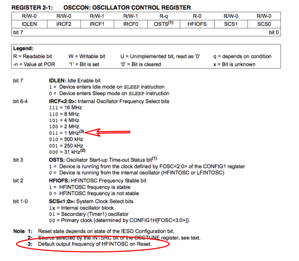 Ha az osccon regisztert nem állítottad be, akkor a kontroller 500 kHz-es órajelről megy.