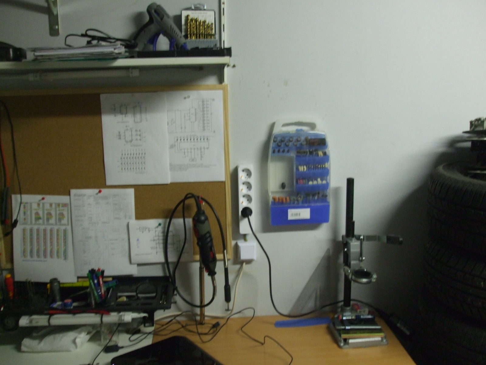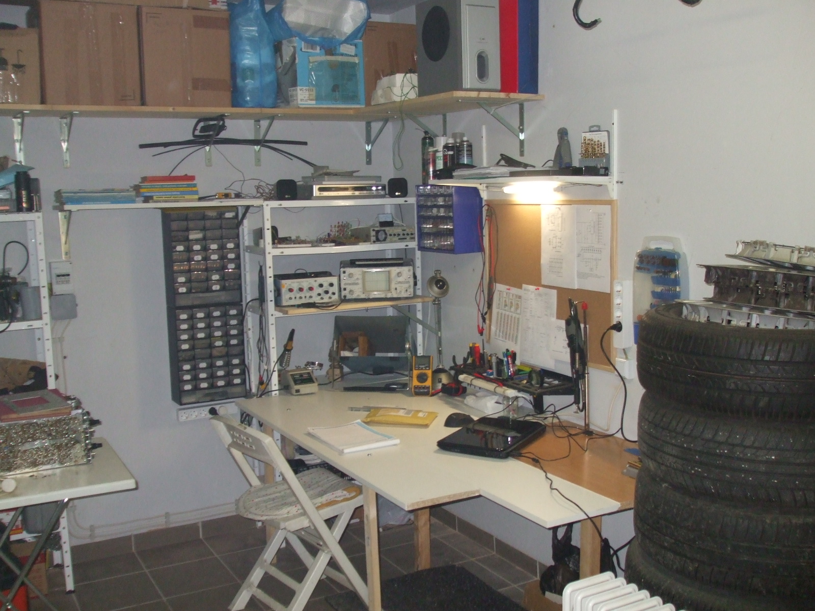 Volt egy salgópolcom és kemping asztal. Ezt mindig kiraktam a garázs közepére, ha csináltam valami. Persze egyre több idő szenteltem új hobbimnak így átpakoltam a garázst és felszabadítottam magamnak ezt a sarkot.