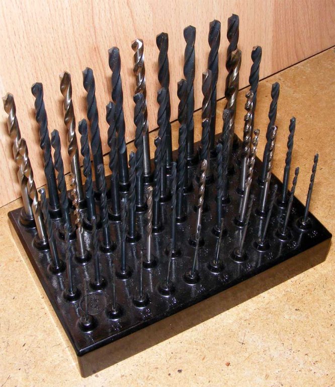 Korábban tettem már fel képet magáról a tartóról, csak akkor még üres volt. Azóta a neten rendeltem bele 3 garnitúra fúrószárat. Azért ilyen vegyes a kép, mert a szállítónál HSS címszó alatt ezek a szárak voltak elérhetők. Amúgy jó esély van rá, hogy fél év múlva is ugyanilyen állapotban lesz a készlet, ui. szabadidőm nincs sok, és egyébként is ritkán fúrok menetet. De a lényeg, hogy most már tudnék fúrni, minden adott hozzá.