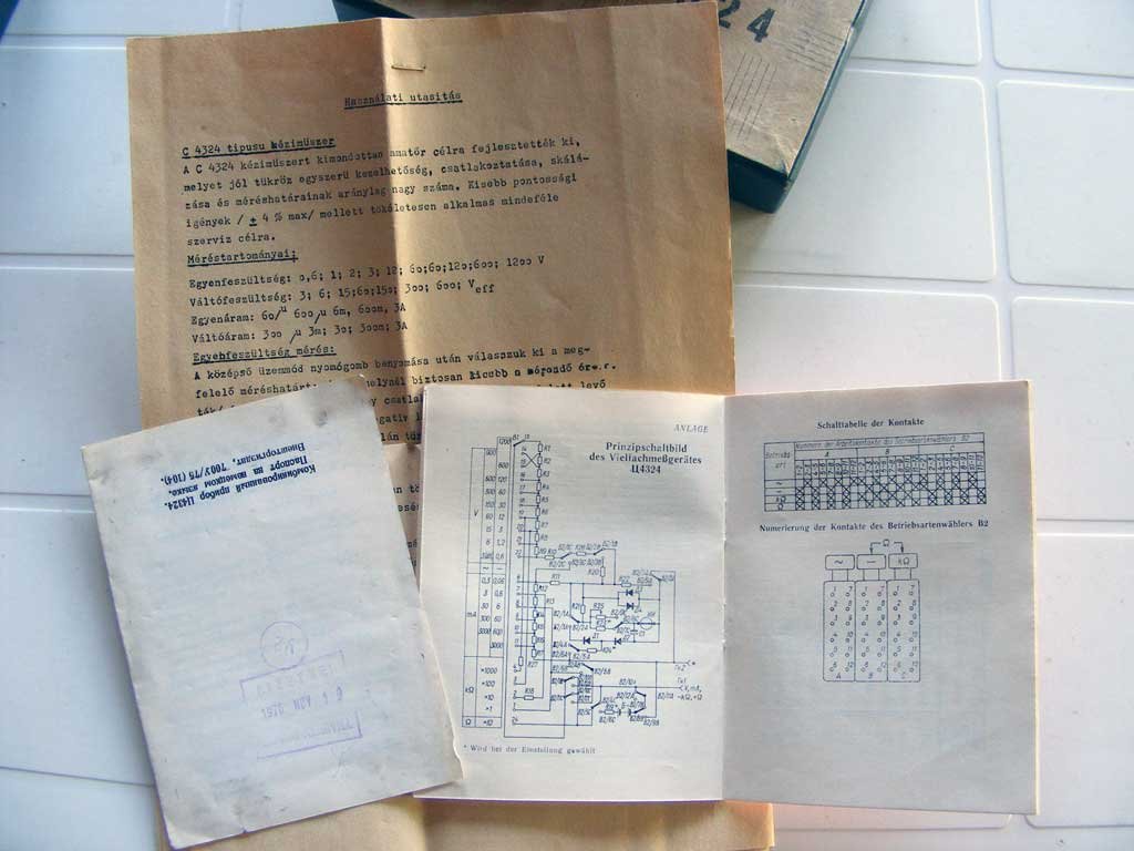 C4324. Ez a "családi" multiméter, 1976-ban vásároltuk. Komplett, dobozával és leírásával. Sajnos a plexi kétoldalt kicsit már repedezett.