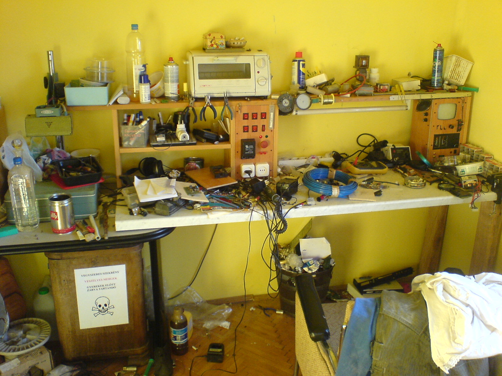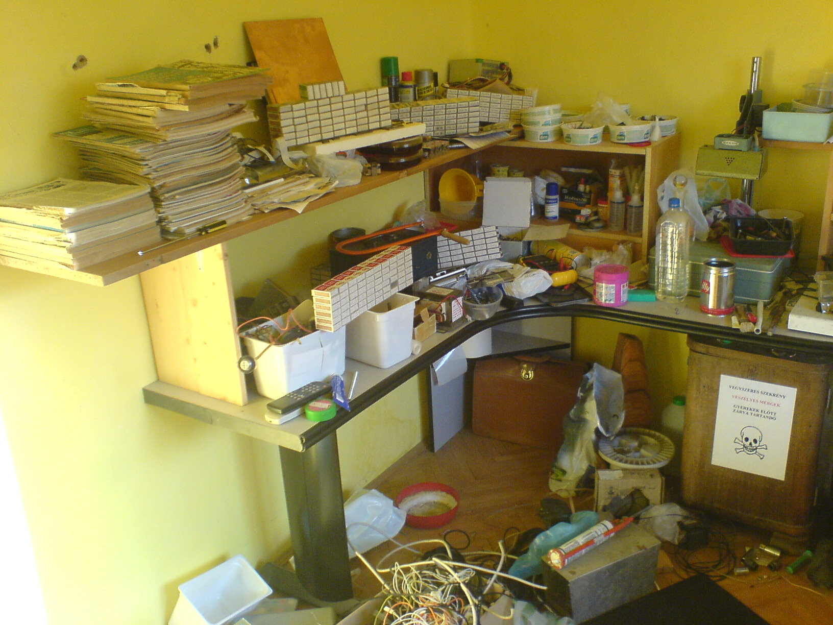 Én hobby szinten foglalkozok az elektronikával, de kiharcoltam egy saját bejáratú, használaton kívüli szobát, amit átalakítottam "műhely" cáljára. Nálam valahogy sohasem sikerül a rendrakás, de furcsa módon mindent megtalálok. Egy pár kép róla Amúgy mint látjátok én is gyufásdoboz-tárolós vagyok! Szerintem ez az egyik legjobb és legolcsóbb módszer!