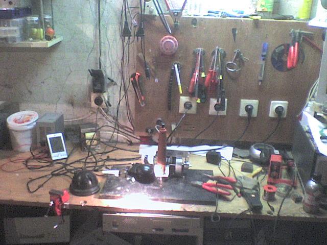 Megmutatom a készülő de sosem kész műhelyem, fáskamra egyik része, kicsit szűk de jó lesz ha majd egyszer készebb lesz. Minimál természetes fény, rend az még nincs, szelektálás folyamatosan megy. Bár nem látszik de trafóból elég sok van, azoknak van egy műanyag bevásárlódoboz, olcsón osztogatják, talán kibírja, összedobálásnál jobb. Nem kenyerem a dobozolás, leválasztótrafó is az asztal közepén, cenzúra a készítő barátom miatt, erről maximum privátba mondok valamit, csak hogy figyelmesebben nyúkáljak bárhová. Gépnek vége, van benne wlan net miatt de most meghalt a win és lusta vagyok a dvd írót kibányászni a szobai gépből, kell még bébisüveg, kevés van nagyon. Talán még egy újfajta dobozkát is bevetek szeparátornak, de ezen gondolkoznom kell hogy hogyan. Remélem lesz időm tovább építeni a műhelyecskét.