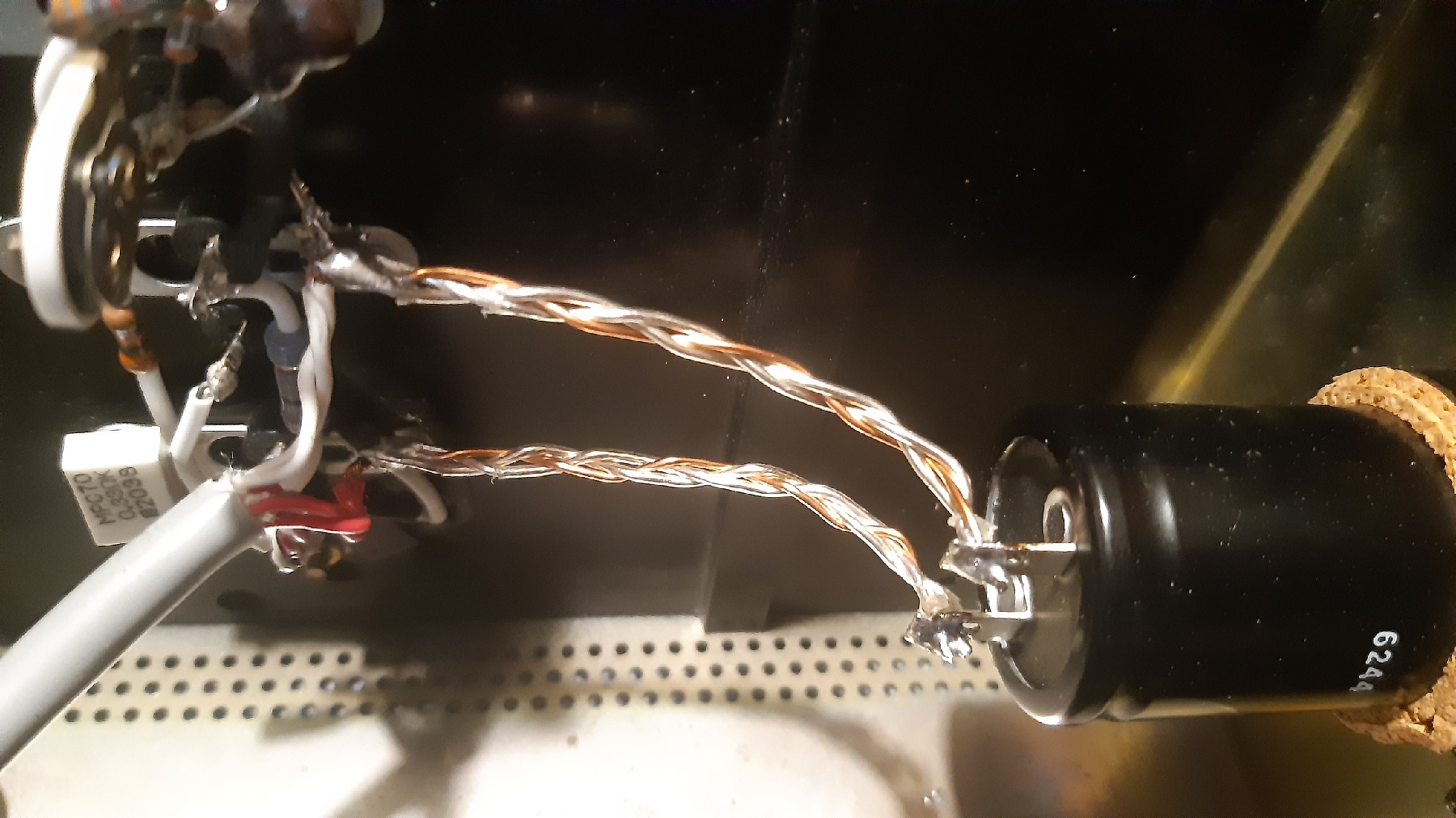 A V-MOSPOWER FET SE erősítő leggyengébb pontja akkor hivatalosan felszámolva, "mivel lúd, akkor legyen kövér" alapon az új kábelben a két szál VdH MCS1000 mono crystal silver wire közé befontam egy OFC rézvezetéket is.