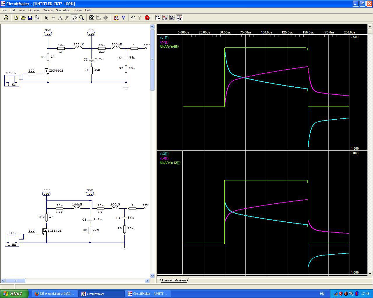 A felsőnél sorosan kapcsolódik a két kondi, az alsónál párhuzamosan. Most vagy a szimulációm rossz, vagy mégis tunerman-nak van igaza. (Pedig nem tartozom azok közé akik amúgy a védelmére kelnek).