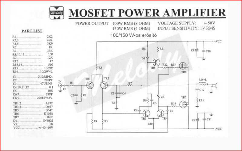 Egyébként meg inkább válassz egy olyan kapcsolást, ami sokkal bővebben le van írva. Ez csak egy vázlat így, gondolom teljesen kezdő lehetsz, nem sok sikert jósolok neked így. Keress rá a VF2-re, a B5, B8 végfokokra, meg láttam még egyet, amiről simán elhiszem, hogy nagyon jó, ezt Alkotó fórumtársunk vette kezelésbe egy nyákterv erejéig. Ez egy MONACOR erősítő, ami egy nagyon szépen kimunkált kapcsolás. Az előzőekről nagyon sok információt találsz ebben a fórumban.