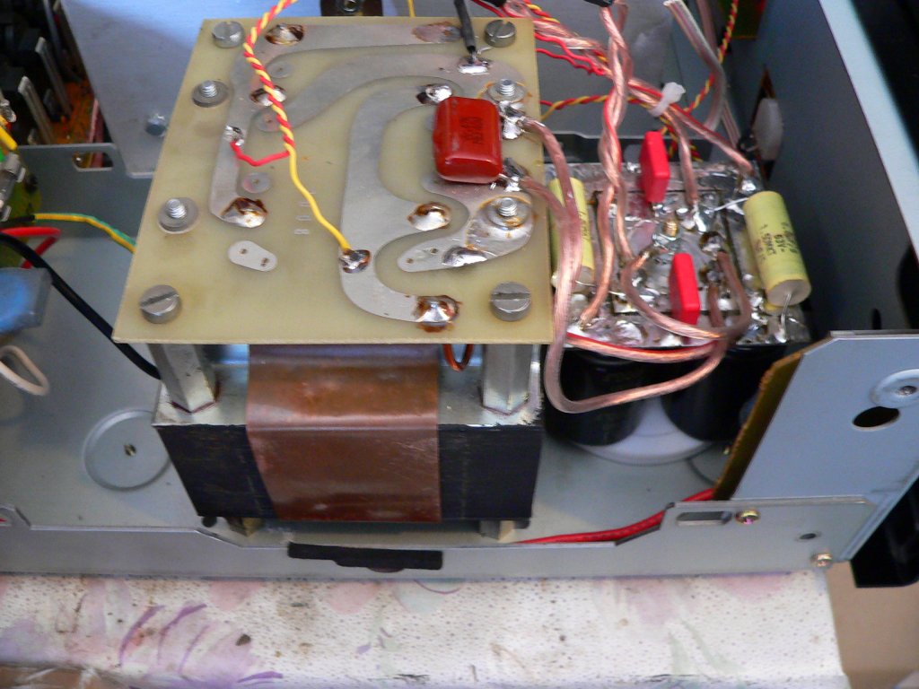 Nagyon köszönöm, óriások vállán állva nem volt annyira nehéz, mint kifejteni az ércet és perforált lemezt önteni belőle... Az eredeti erősítő, ami a dobozban volt, kb. 2x100W volt és az alsó lemez jó darabon, a fedele meg teljes terjedelmében peforált, akadályt nem gördít a hűtés elé.