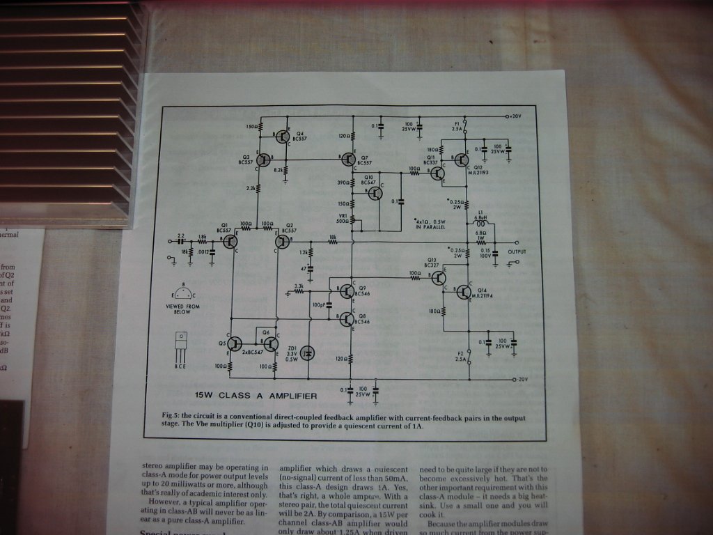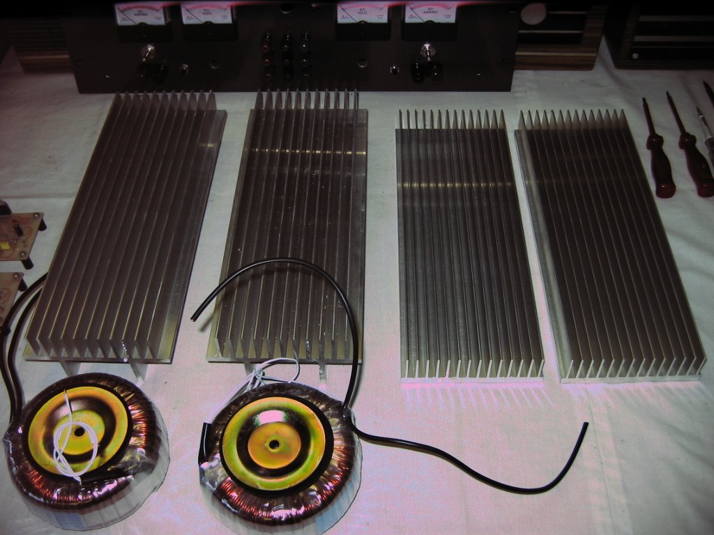 Készülőben 2 db Class -A-. A táp +- 22 v , végtranzisztorok MJ 21194, 15 w. A másik JLH 96 változat,250 w trafó,27 v ról üzemel ,MJ 15003 vég tr, nyugalmi 1.2-1.7,30 cm borda/végenként. Mind kettő mono blokként fog fel épülni.
