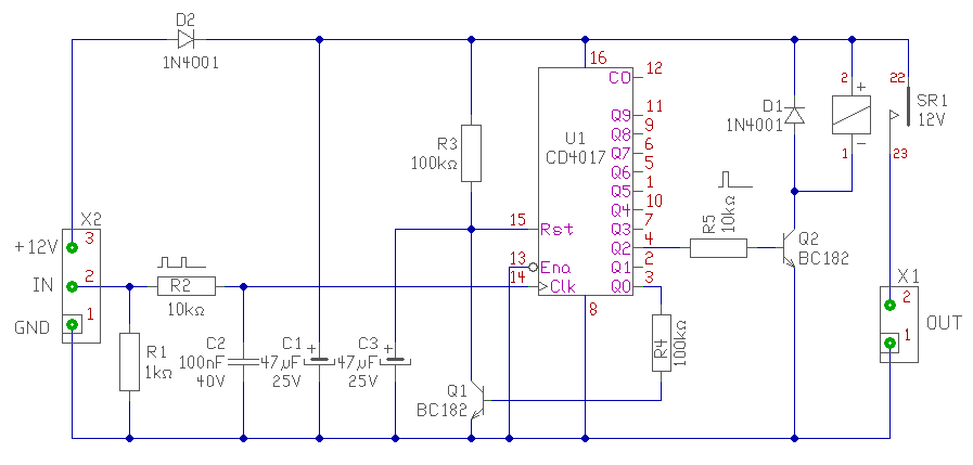 Megcsináltam, és működik is, viszont ha motort teszek a kimenetre (ablaktörlő 12V) akkor a relé gyorsan ki-be kapcsol néhányszor, és csak utána kapcsol be rendesen. Ha behúzott, akkor viszont működik az időzítő. Lenne valakinek ötlete, hogy miért csinálja ezt?