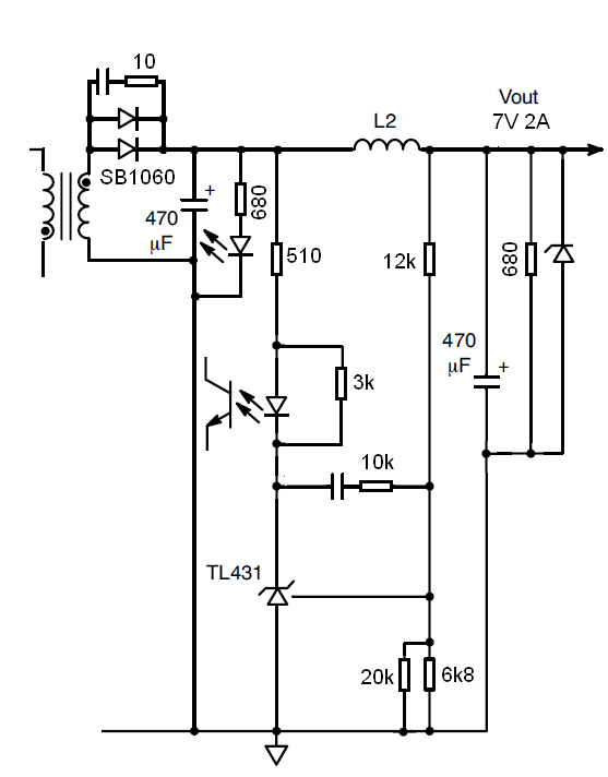 Hiányzik egy router tápom, 5V 2A. Pénztárgép bontásból lett egy 7V 2A-es tápom. Gondoltam átállítom 5V-ra, annak mennie kellene. Ráadásul még szerencsém is van, csavarozva van, nem ragasztva a doboza. TL431, ellenállásosztó, az alsó ág 6k57-re adódik, így a felsőnek is annyinak kellene lennie 12k helyett és elő kéne állnia az 5V-nak. Próbára csak egy 18k-t raktam párhuzamosan a 12k-val. Elindul, leáll, elindul, leáll...közben 3,x és 4,6V között ugrál a feszültség, már amennyire egy multiméter ezt leköveti. Mit lehetne tenni érte? Nagyon kicsi lenne a kitöltés és leállítja az IC magát? Terheléssel már lehet, hogy jó lenne?
