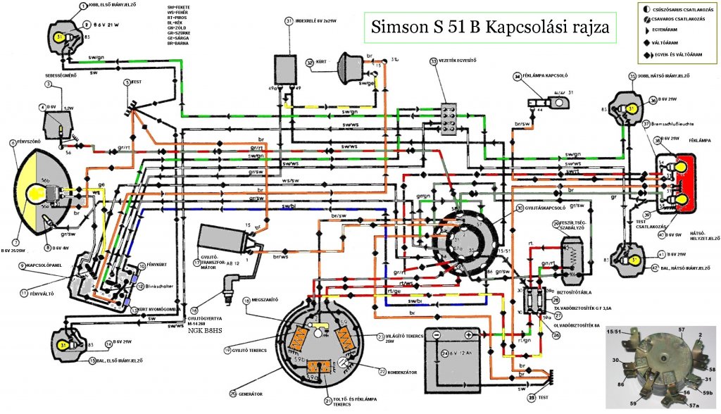 Van egy S50B simo. Magneses gyujtas. Egy tekercs vilagitas egy pedig tolto tekercs. Bekotottem egy led vilagitast, de ezt az akkurol uzemletetem. Erre szeretnek toltesi megoldast. A tolto tekercset kicsereltem 12V35W ra. A vilagitasi rendszer, most 12W ot fogyaszt + feklampa. A tekecsnek egy kivezetese van, annak feszszabba kell mennie? Mostani bekotesem ugy van, hogy az akksi negativ saru a vazra van testelve, es minden mas vilagito berendesez ugyan ugy innen kaja meg a testelest. Ezzel a kotessel a vilagitas mukodik kozvetlen a tekercsrol, csak ugye vibbral. Ezert kerult be az akksi. Csak azt nem tudom, azt hogyan taplaljam meg. A tekercs kivezeteset hova kell kotni?