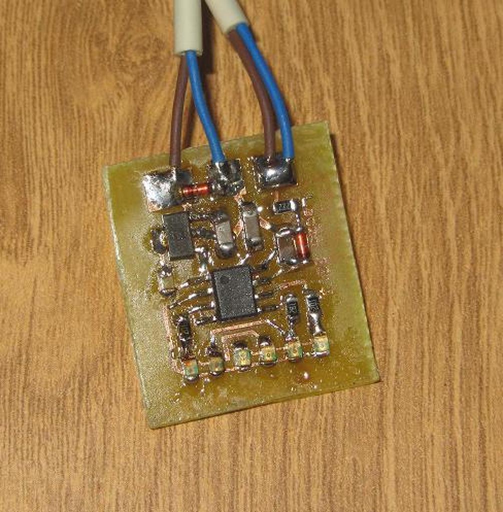 Kb. egy éve valósítottam meg az akku töltő ideálomat. Nem egy nagy durranás de nagyon elégedett vagyok vele. A töltő egy 5 amperos laptop táp, beállítva 14,4 voltra. Zárlat védelem már benne volt, a fordított polaritást pedig egy dióda és biztosíték védi. Ami teljesen az én tervezésem az a kijelző része. PIC12F675 figyeli a töltő áramot és 6 fokozatban mutatja a töltés erősségét. Úgy terveztem hogy bármilyen akku töltőre könnyen fel lehessen szerelni. Folyton olyan töltőbe botlok aminek nincs áram mérője, ezért csak reménykedni lehet hogy jó a csatlakozás és tényleg van töltés. A NYÁK teljesen egy oldal szerelésű, ezért könnyen fel lehet ragasztani a töltő dobozára. A töltés erősségét a csipesz vezeték feszültség eséséből számolja ki. Három szál vezetékből kettő megy + - tápnak, a harmadik szál pedig a negativ pórus csatlakozástól kb. 30 cm-rel kell csatlakoztatni. Ez a méret másfeles vezetéknél érvényes. Valójában ki kell tapogatni hol a jó. Ha valakit bővebben érdekel a kapcsolás annak zippelek némi infót. Üdv. Laczo