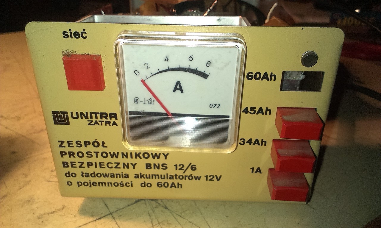 Amper szaga van és elég erőteljesen füstölt. Bizti van mind a kettő oldalon. A szekunder felőlit leverte. Szakadás mérővel szekunder oldalon minden láb rövidzárat mutat. Közben rájöttem, hogy lengyel, csak itthon mindenki orosznak hívta, így a feliratokat nem is néztem. Annyi elektronika van benne, ami az utolsó kép bal oldalán látható. Ennek a tetején van egy megéget poti is. Valószínűleg ez az áramszabályozása is, ahogy néztem, amit a kijelző mellett lévő pár kapcsolóval lehetett állítani, az akksi méretének függvényében.