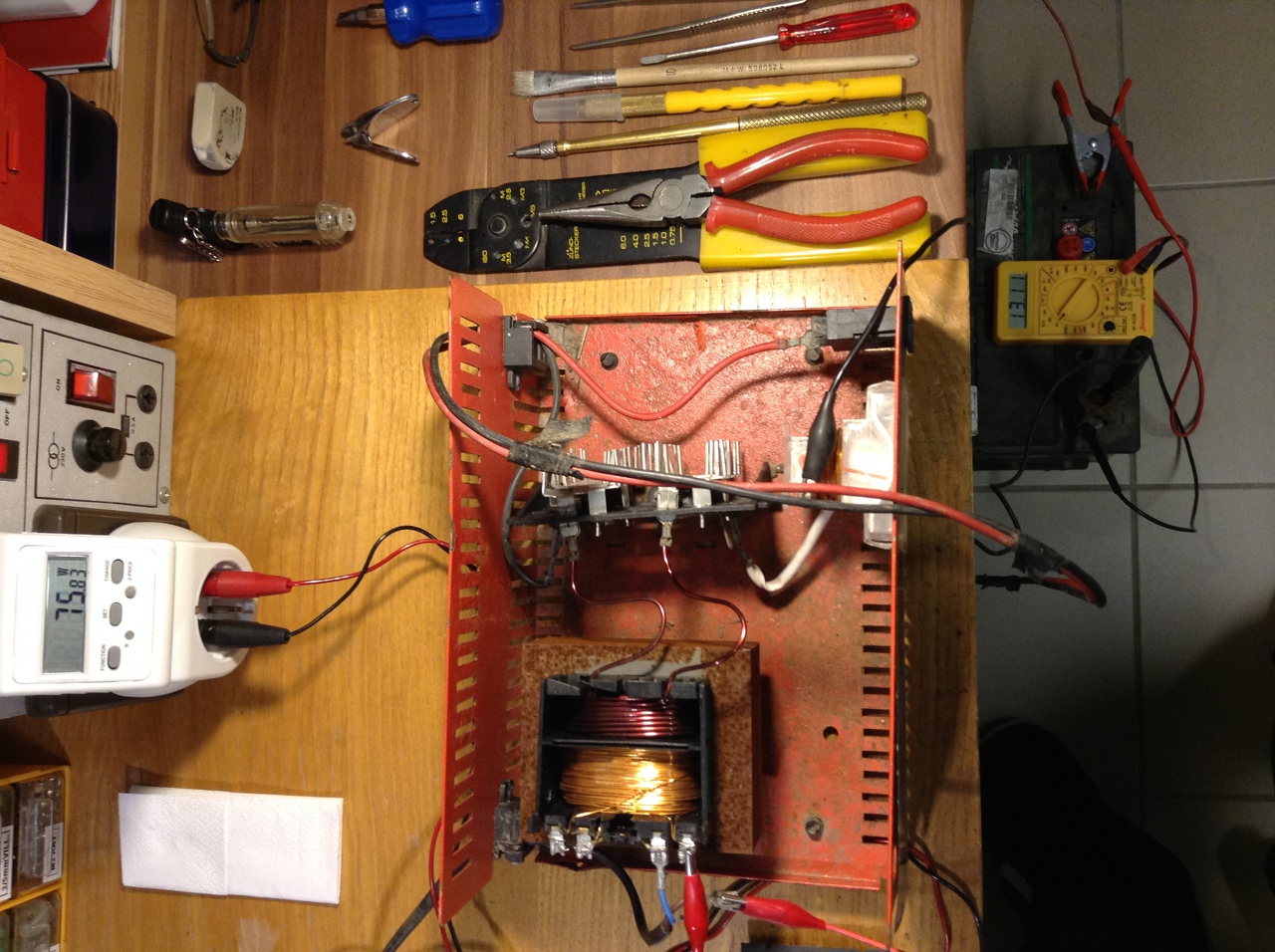 Hozzám került egy viharvert töltő ,trafó,dióda híd,műszer műkődik,csak a doboza sérült.Vagy minden? Prímán viszi a 9 ampert is,zizzenés nélkül ,elég izmos trafó.Viszont a mért értékekkel nem vagyok elégedett.A szekunder oldal Uü.13,1V. az DC 12,5V. kevésnek találom.4,5A-os terhelésnél már 10volt alatt van.Volt már valakinek dolga hasonlóval?Az értékeket nézve szerintem ezt még új korában sem lehetett akkutöltőnek nevezni. Köszi.