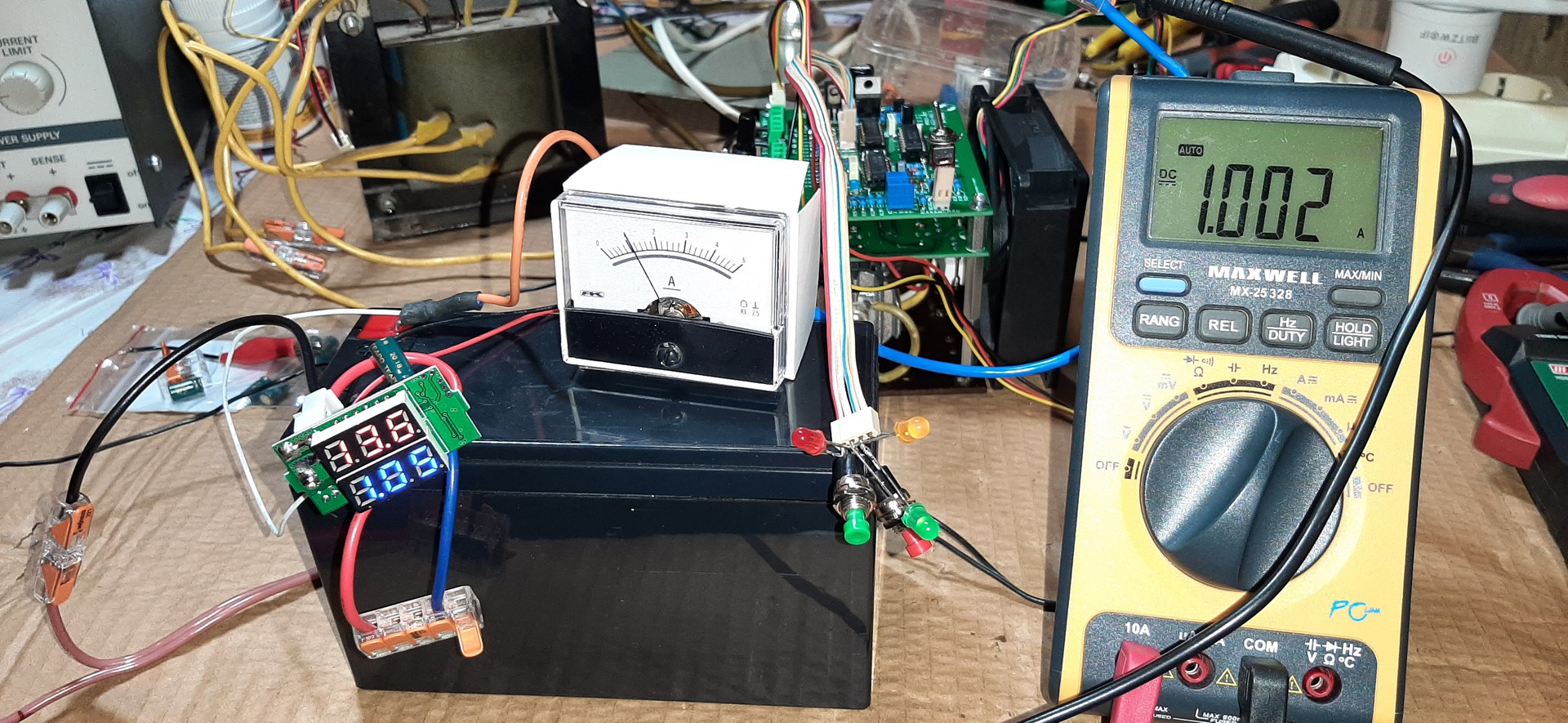 Azt kell mondjam mint az előttem szóló is tapasztalt, hogy Idézet: Bővebben: Link„A fentiek alapján az akkumulátor töltő paramétereinek mérésére alkalmatlannak minősítettem” Próbáltam így is bekötni 47 és 100µF kondival is de az áram mérés ugrálásán nem segített. Sőt mint írtam tettem a kijelző müv.erösítő nem invertáló bemenete és föld közé (ez a shunt-ön eső feszt erősítő a uC AD átalakítójának) egy 47µF és 100µF-os kondenzátort,de az sem hozott érdemi pozitív változást. Még külön neki szánt dugasztápos táplálás sem segített. Végül úgy döntöttem mivel találtam egy működő 200mV-os dvm-et, hogy maradok a töltő eredeti mérési kimenetének használata mellett. Van még egy 5A deprez műszerem talán még az hozta a legjobb eredményt . De azt azért nem fogom alkalmazni, mert csak 5A-ig mér én meg kicsit feljebb tekertem a gépet 6,5A-re. A trafó szerintem még a 10A-et is bírná de én már ennek is örülök. Eredetileg egy sima teljes hidas több szekunder megcsapolásos töltő volt ami most alakítottam tirisztorosra. Nem az ajánlás szerinti alkatrészeket használtam a hídban, de tirisztorok azt hiszem 15 a diódák pedig 12A-esek. Videót nem tudok feltölteni, mert túl nagy.