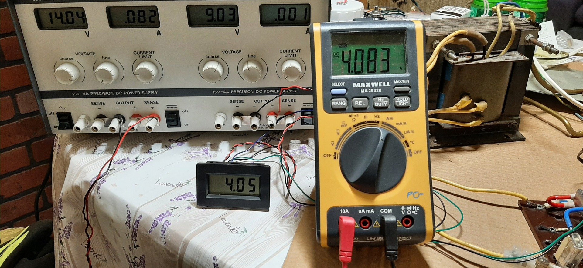 Bö öt év pihentetés után nekifogtam megépíteni az Accu-Mat1-mod-3.2-est. Az áramkör már működik be van hangolva és én is ott tartok, hogy a panelműszert kellene működésre bírni.Hasonló műszert szeretnék használni mint a tiéd.Amíg csak izzóval próbáltam szó szerint használhatatlan volt akkor független tápról üzemelt.Sem a feszültséget sem az áramot nem mutatta jól, összevissza ugrált vagy nullát mutatott.Aztán átkötöttem, hogy a kimenetről kapja a tápot, ekkor már akkuval próbáltam és a feszültséget már jól mérte köszönhetően a puffer hatásnak.De az áramot továbbra sem méri, akárhogy is kötöm a nagy áramú szálakat.Most a shunt utáni opamp előtti fesz.osztó részen fogok kísérletezni a korábbi hozzászólások alapján.Én ilyen műszert használok.