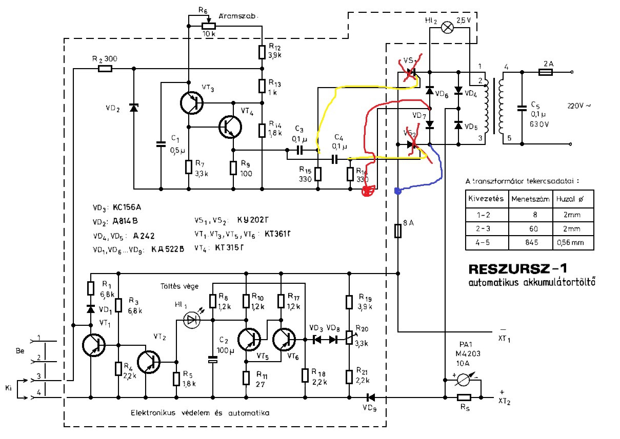 Sziasztok kaptam 1 szétszedett orosz töltőt ami 10A tud.A mellékelt kapcs.rajzon az áthúzott 2