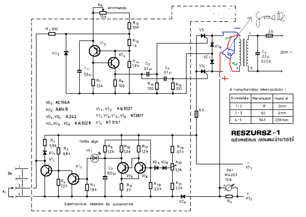 A te graetzed nem kell, ha a régi dolgok bent vannak. A VD4, VD5-nek bírni kell a 10 ampert. Innen nem látszik, melyik diódád mekkora, azonosítsd. A tirisztorok ( nem triak ) anódjai lesznek összekötve a rajz szerint. Élesztéskor azért tedd be sorban a "sufnivilágítást", hogy lásd, rendben működik-e ( kis amper lesz nyilván), szabályozható-e. A hozzászólás módosítva: Okt 2, 2020