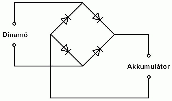 Igen, kell az egyenirányító híd, mert a "dinamó" váltóáramot ad le! Érdekes, hogy dinamónak hívják, mert ez úgy működik, mint egy generátor, csak a diódák hiányoznak belőle...