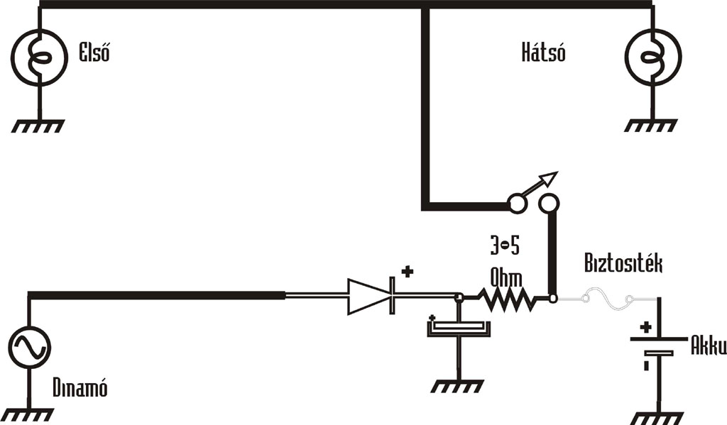 van egy tippem amihez 4 darab kisteljesitmenyu egyforma DIODA kell. ha a dinamo tul sokat tolt koss egy ellenalast a dinamo utan