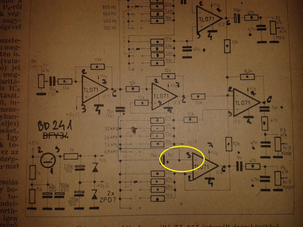 ![]() Ez a kapcsolás már meg van építve 20 éve és most is működik úgy ahogy. Csak a mély részét használtam ami enyhe brummal de jól megy. A közép soha nem is szolt, a magas meg rosszul, gondolom a tegnap feltárt hiba miatt.