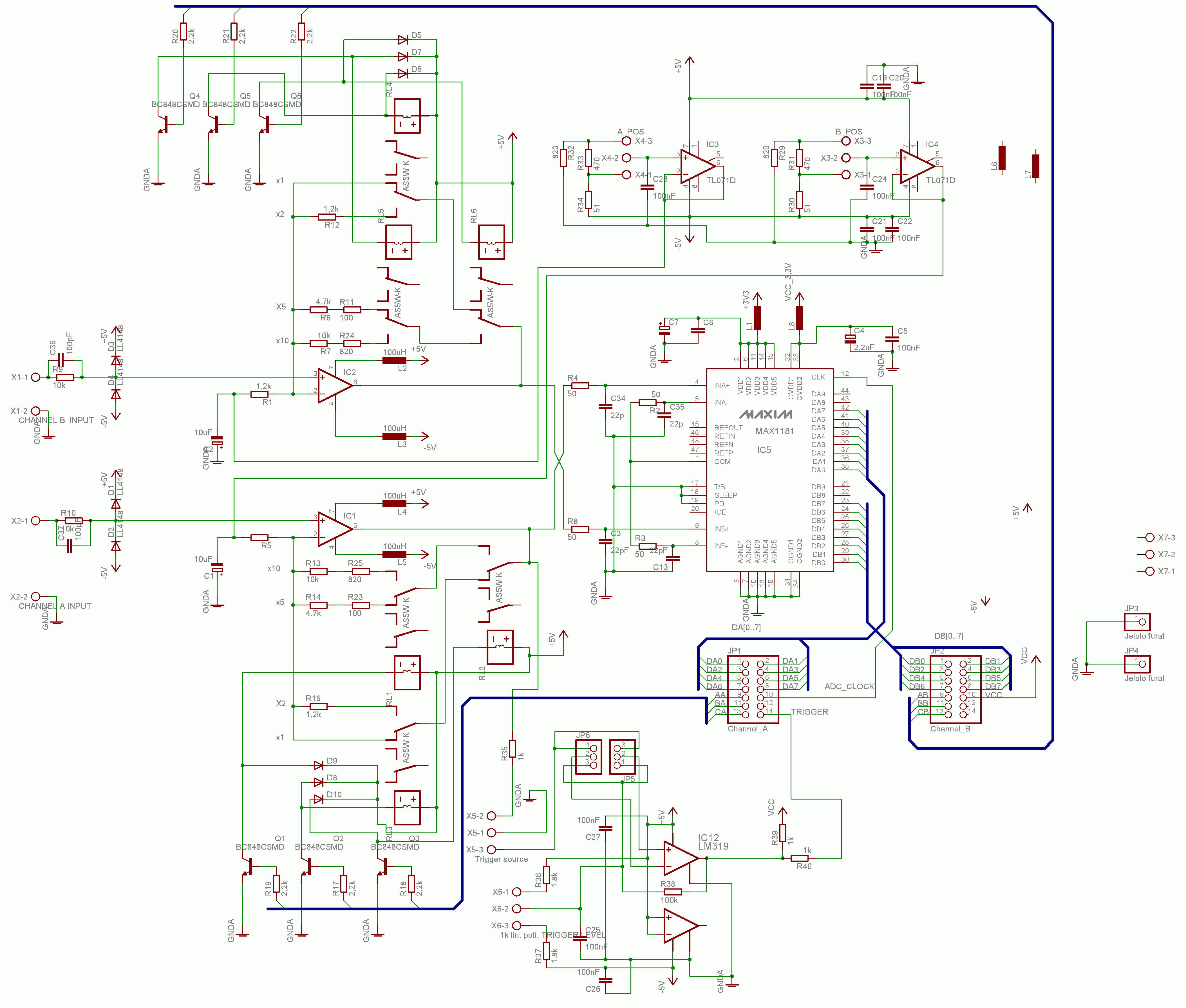 Egyenlőre a helyedben csak az analóg részt építeném meg, AD átalakító nélkül. A végleges megoldásnál is elválasztanám és leárnyékolnám az AD átalakítótól az analóg panelt, mert az AD átalakító órajelét "veheti" esetleg.