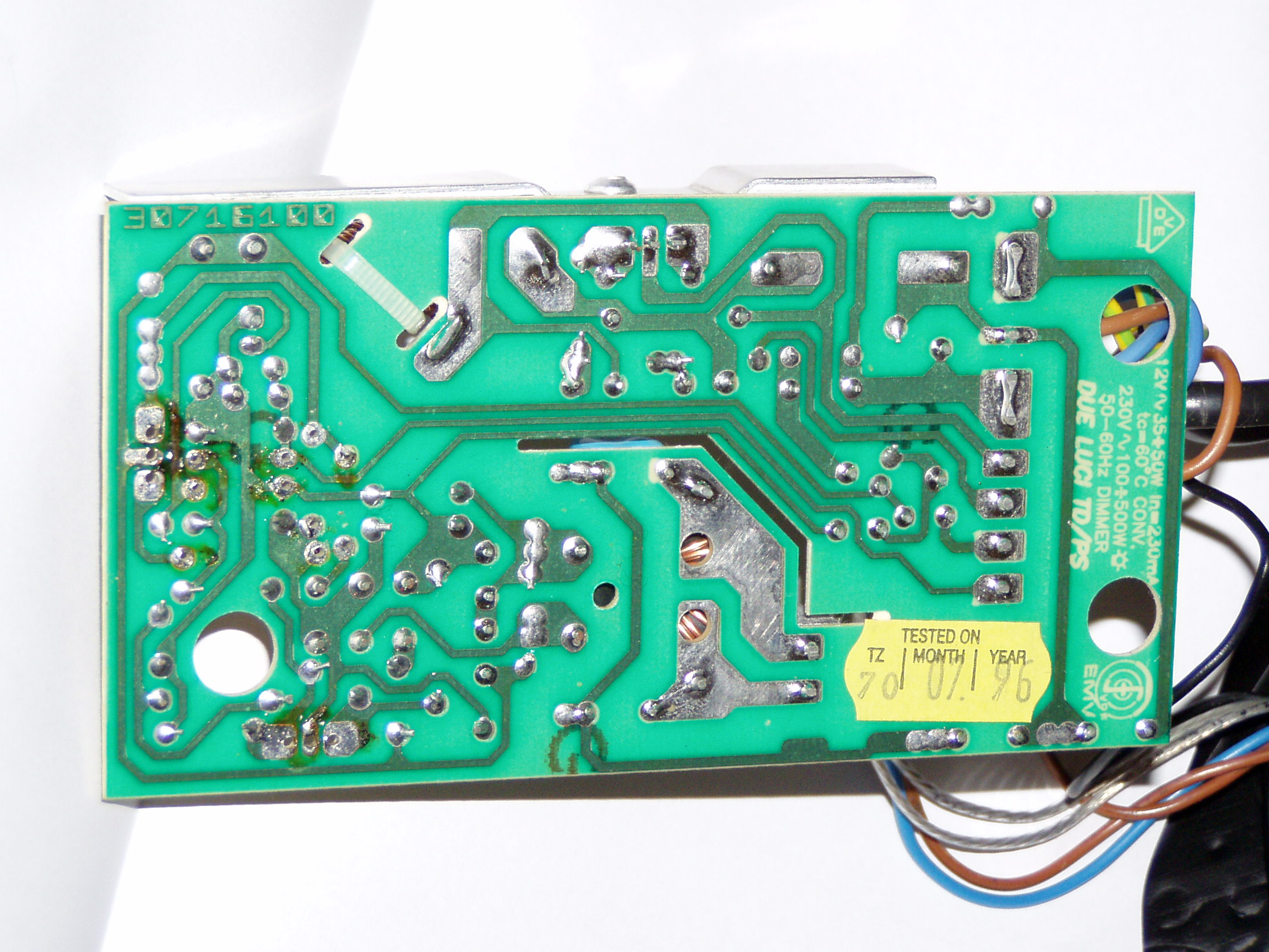 Az elso kepen megjelolt ?biztositek? kormos, talan ki van egve? De latok benne egy szalat, nem ugy nez ki mintha el lenne szakadva. Vajon eleg lehet ezt kicserelni? Az egyik dioda korul es mintha eges folt lenne, meg nem teszteltem a diodat. Mas gyanusat nem latok elsore. A 3dik kep a kapcsolo resze, a felso potmeterhez vannak szalak kotve, azzal lehet allitani a felso lampat, de az also potmeterhez semmi sincs kotve, es a ket null ossze van cinezve. Ez valoszinuleg az alson kellene legyen, csak nemtudom melyiken, es miert van a ketto osszekotve.