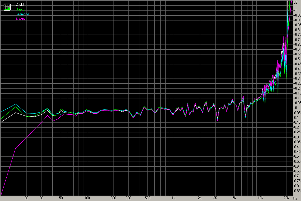 Én véleményem: Úgy látom, hogy elég nagy felbontású a kép, mármint a dB-eket illeti...ezek szerint ami mérvadó lehet ebben az összehasonlító mérésben, máramennyire összehasonlító az a mély tartomány, méghozzá, hogy a B5 ebben gyengélkedik az összehasonlított HTA-30-al. A többi "fűrész" jelben meg a még finomításra szoruló korrekciós file a ludas. Mert pontosan ugyanolyan fűrészjele nem valószínű hogy van két tök különböző végfoknak a majdnem teljes frekvenciamenetben. Így azok ott valószínű teljesen egyenesek ahol egyformák.