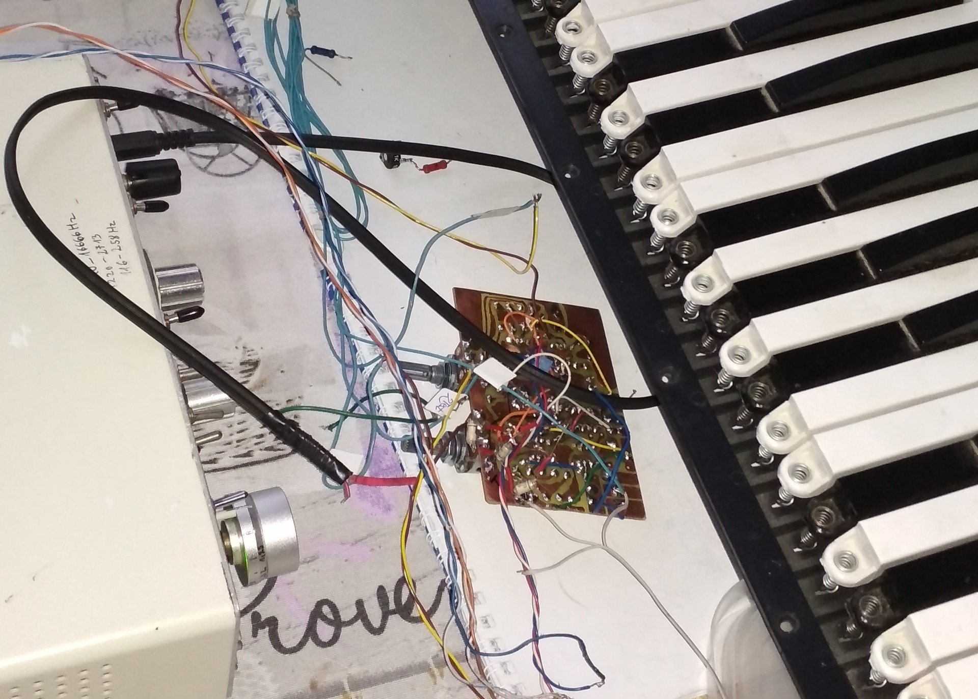 Én is játszottam pár éve, hogy analóg polifonikus hangszert építettem 555-ökkel. Sajnos, az alap oszcillátorokat naponta kellett utána hangolni. Vettem egy gyerekjátékot. Annak legalább kvarcvezérelt CPU állítja elő a hangjait, csak éppen a hangszerkínálat kevés és a hangjai nem tetszenek. Tud színusz, négyszög és fűrészjelet, ezeket csúfolja klarinét, hegedű, orgona stb.-nek. Kellenének hozzá jó effektek, amivel olyan igazi jazz orgona szerű hangot lehetne hozzá varázsolni, de sajnos itt senki nem tudott.