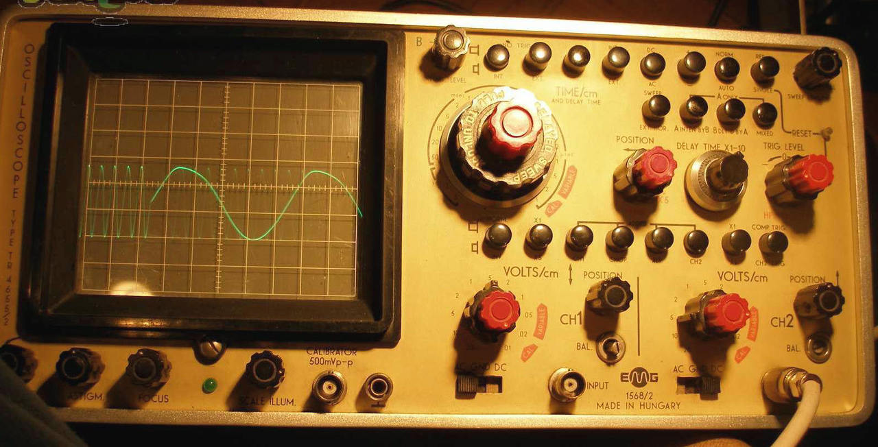 Az időlap már működik, sugár megjelenik, gyönyörű fűrészjelet produkál a generátor, viszont van a Time/DIV kapcsolónak 3 olyan állása, ahol nem jelenik meg a sugár, viszont ha mérendő jelet kapcsolok rá, akkor elindul a fűrész és megjelenik a jel is.