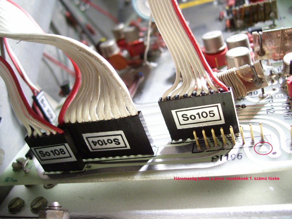 a piros színü vezeték a szalagkábelen. A csatlakozók Soxxx, a tüskesor PIxxx jelölésüek, azonos számúakat kell összecsatlakoztatni.
