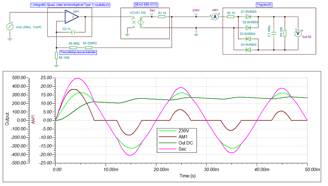 Nagyon jó ötlet amit írtál, a pillanatnyi értéket kellene figyelni, mert abban igazad van, hogyha van egy nagyobb pillanatnyi áramfelvétel a kimenet felől ami hirtelen csökkentené a kimeneti feszt, akkor ezt gyorsan vissza kellene tudnunk szabályozni a 230V-os értékre.