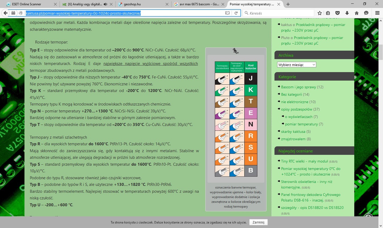 MAX6675, egy K típusú hőelem és egy kontroller? Az első kettő egyben kapható pl. a HEStore-ban is.