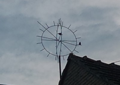 Na igen, betonvasból, az volt kéznél. Az is csak növelte a sávszélességét, úgyhogy nem nagyon kellett a méretekkel törődni. Igazából az anyagválasztás nem is számít túl sokat, mert az áram úgyis csak a külső felületen folyik, bár a betonvasnál nem egészen tükörsima. Mégis működik.
