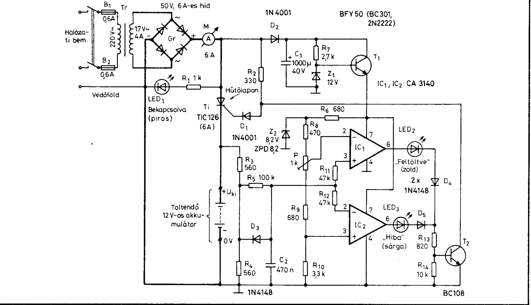 Értem. Közben találtam egy kapcsolást, amit némileg átalakítva, tudhatja ami nekem kellene. Ez töltő áram visszajelző, de akár a tirisztort is tilthatja.