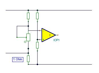 A müv erősítő akkor ad + Ut körüli értéket ha a pozitív bemenetén magasabb a feszültség mint a negatívon. A többi csak feszültségosztás. Akkor billen a kapcsolás, ha az 1 Ohm-on (lehet szerintem kisebb is ) a terhellés hatására emelkedő feszültség hozzáadódik a pozitív bemeneti osztó talppontjához es így a negatív fölé emelkedik.