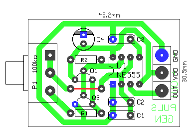 Egyik a + tappal sorba ezzel lehet a frekvenciat valtoztani , masik forgomozgo resze a tapfeszre kotott potira csatlakoztatva. Az allo labai pedig a 2 bazisra .Igy a kitoltesi tenyezo fog valtozni.