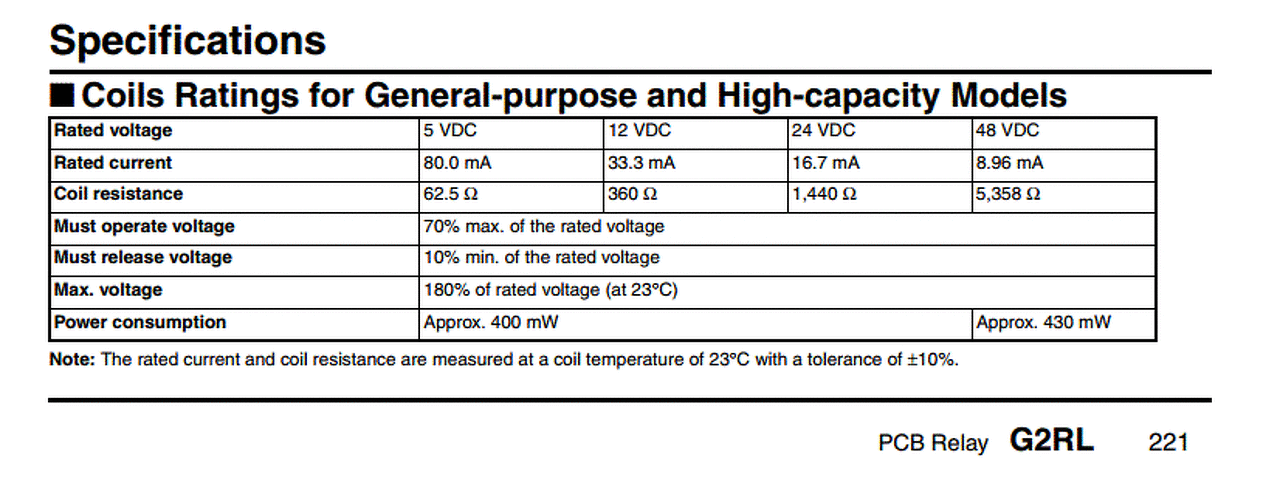 Általában fennáll a fordított arányosság a relé névleges feszültség és működtető áram között. A gyártmányok között természetesen lehetnek kiugró értékek.