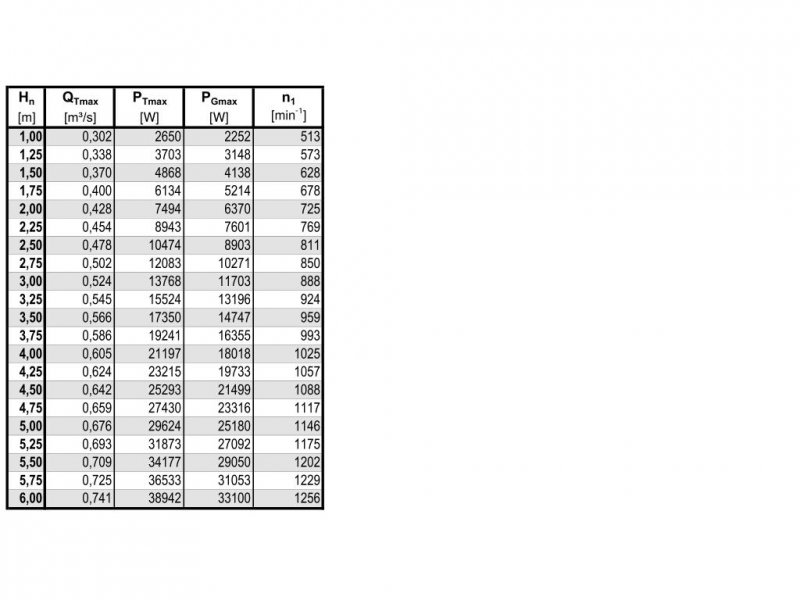 El is készültem. A lényeg látszik rajta, tehát úgy érdemes méretezni, hogy a cellákat a teljesítményhez szükséges víz csak 50%-ig töltse meg (tehát pld. 600W-hoz szükséges víz csak félig töltse meg a cellákat, így van jól kihasználva, jó a hatásfok, mert csak a legvégén, az alsó ponton tud kifolyni a víz, amikor munkát már szinte semmit nem tud végezni, tehát az egész hasznos munkát elvégezte).