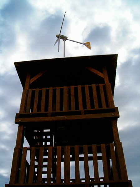Öregem, ezt szépen kiépítetted! Ha jól látom, ez egy fd-2,7es rotorátmérőjű 1kw os (kínai) turbina.Bár annyit tanácsolnék, csinálj hozzá villámhárítót! Feszítést sem látok a képen, én azért ki is horgonyoznám legalább egy 6-os sodronnyal, ha mást nem ,a kerítéshez.Milyen magasan van?Eleget pörög?A napelemekhez meg látom külön töltésvezérlők vannak?Nem zavarják egymást a turbina töltőjével?
