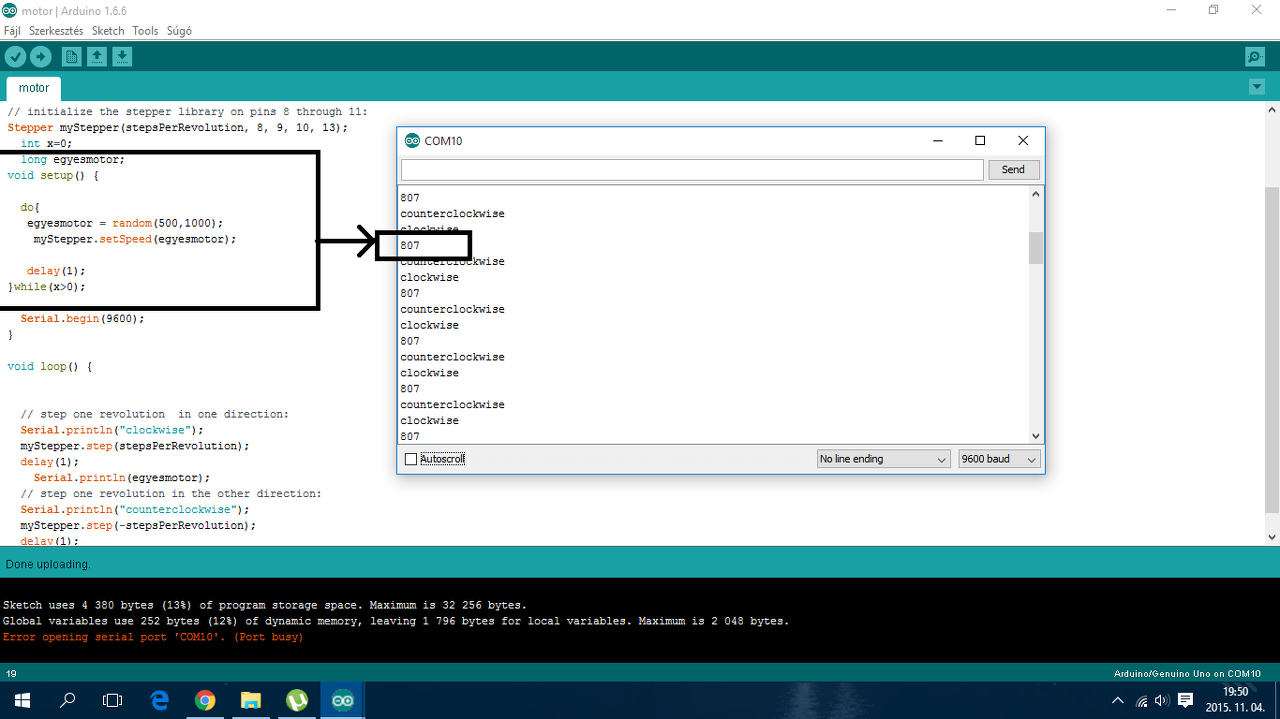 Ezzel meg az a baj, hogy a véletlenszámgenerálás a setup() függvényben történik, ami ugye csak egyetlen egyszer fut le, az egész program elején, ezért nem változik a szám értéke.