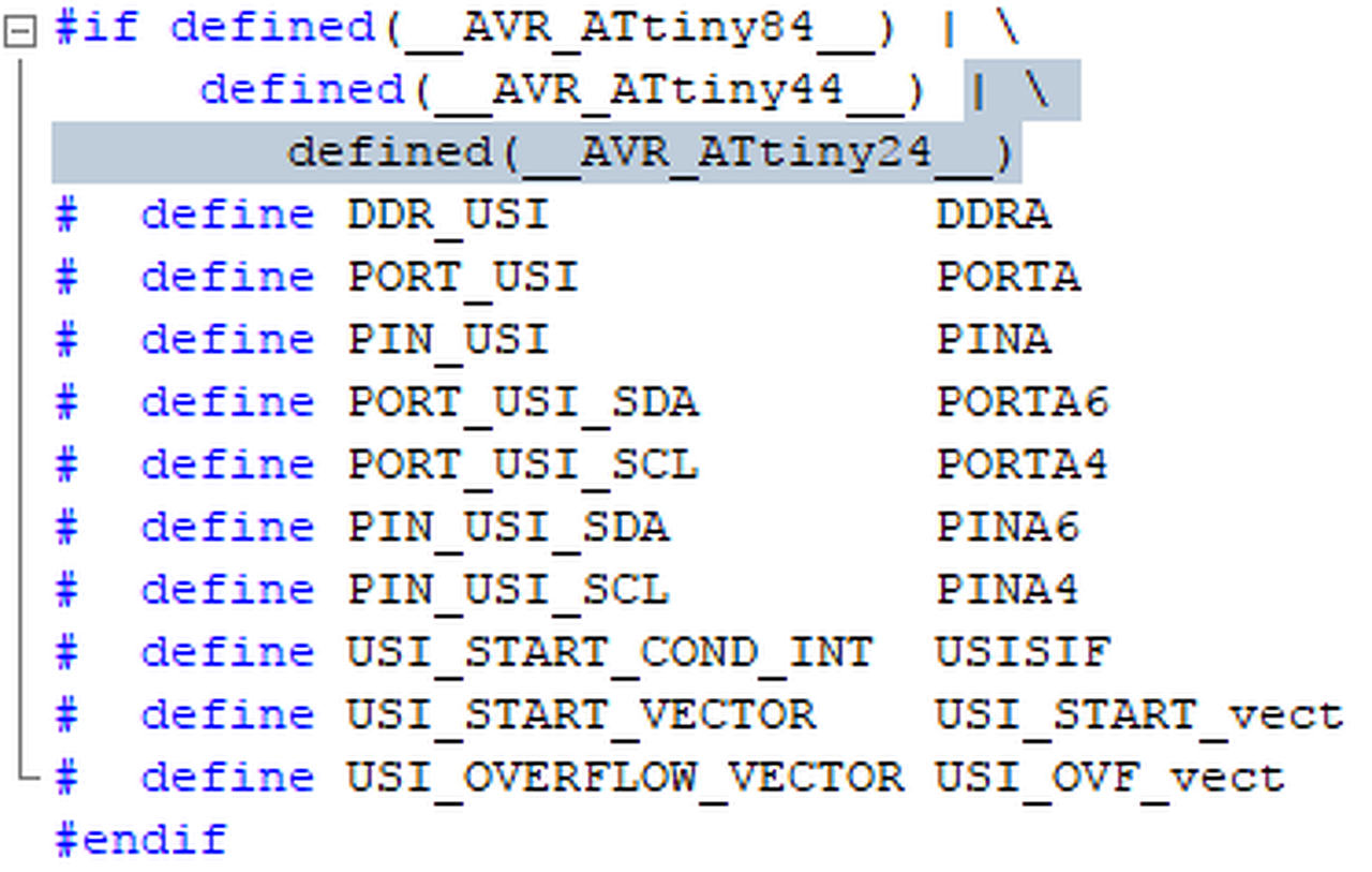 Szóval még mindig ott tartok, hogy van egy csomó Attiny24-em ![]() Mielőtt nyákot gyártanék, egy gyors kérdés: A TinyWire lib miért nem támogatja alapból az Attiny24-et? Az adatlapot böngészve nem találok lényeges eltérést az USI résznél, de lehet, hogy valami felett elsiklottam. A képen látható módosítással lefordul ennek a kódnak a lebutított változatával (érintős részt kivettem belőle).