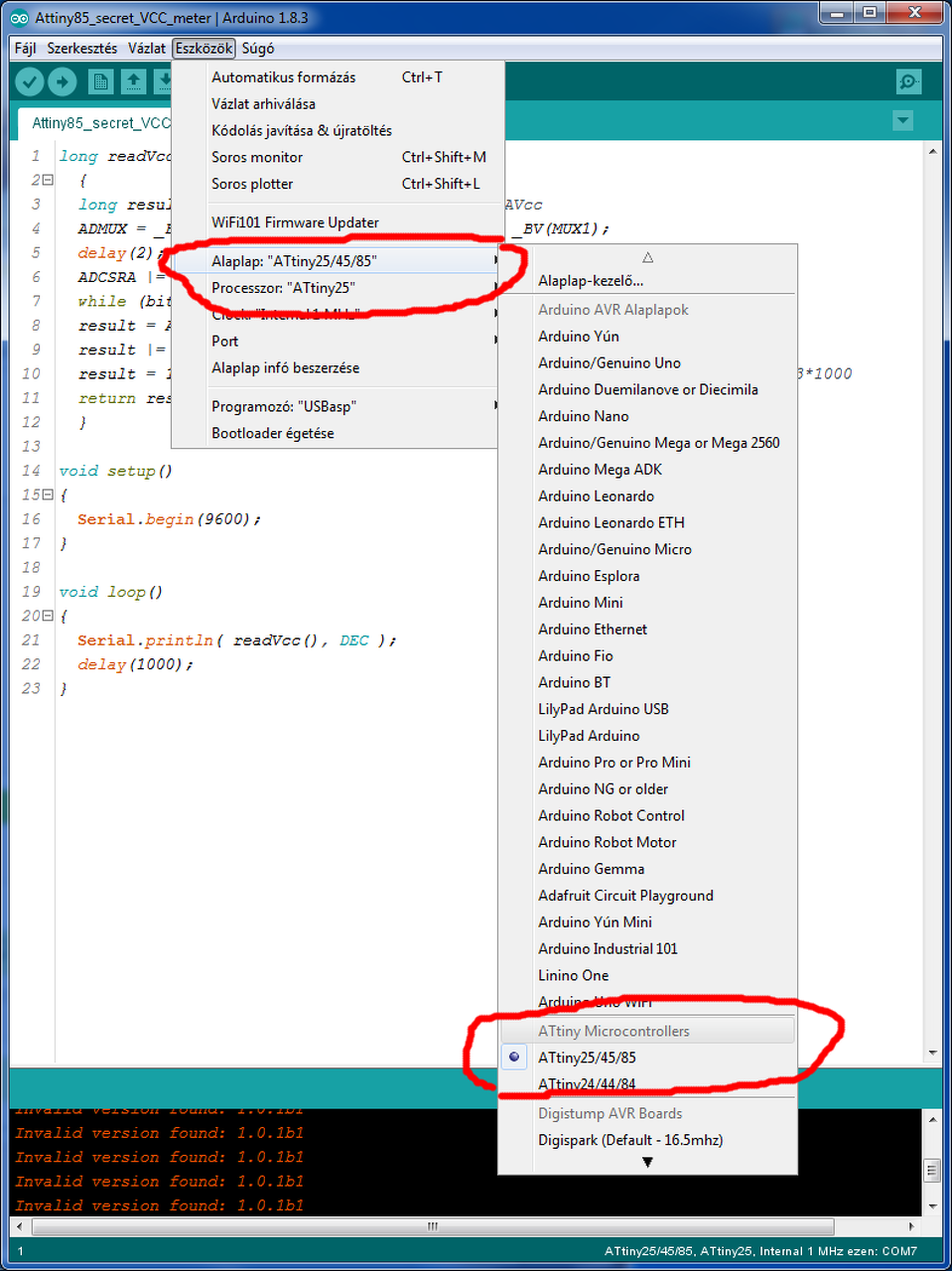 Attiny 24/44/84 - 25/45/85 board importálása Arduino IDE -hez... A linken leírják hogy kell beimportálni.