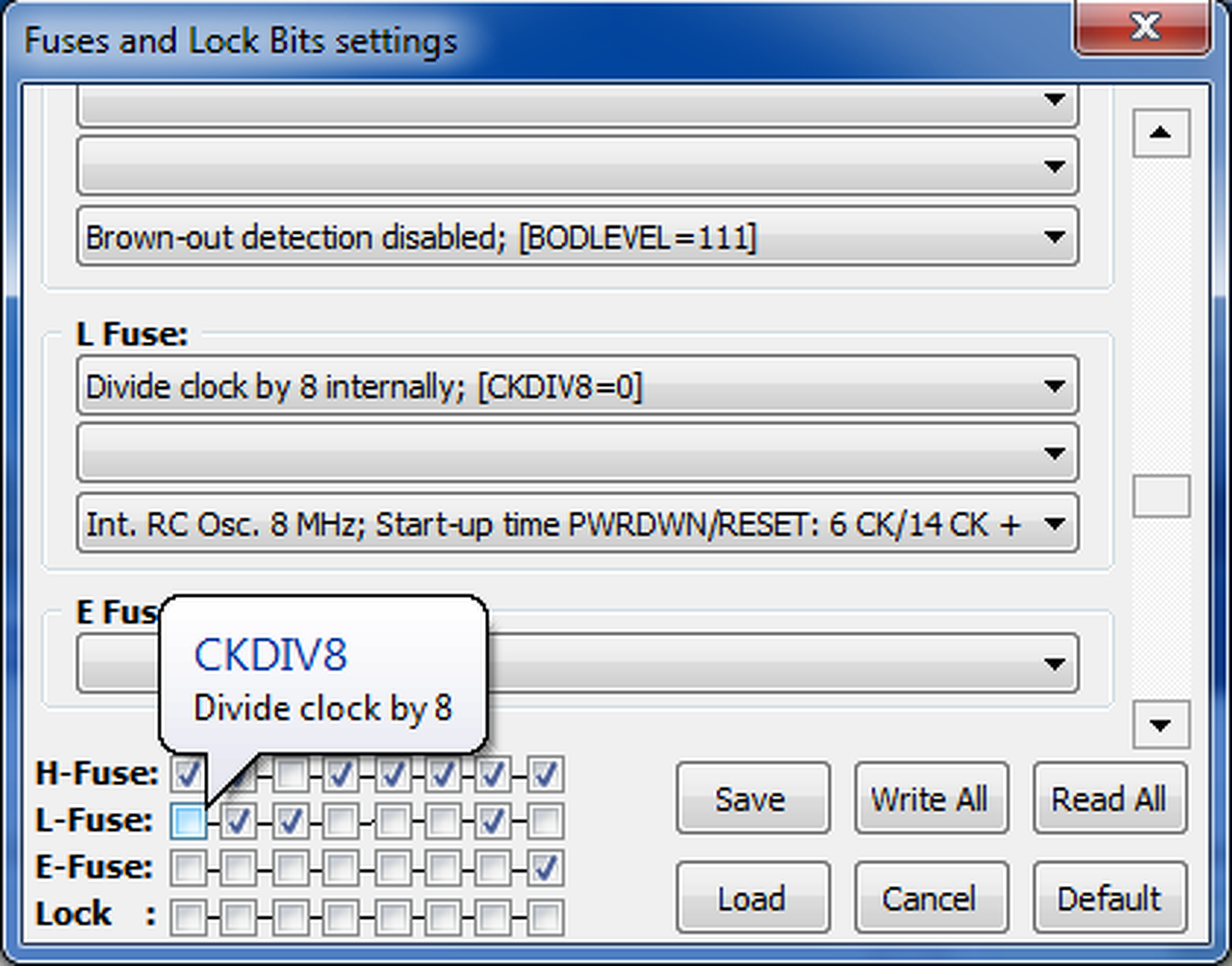 A fuse biteknél van ez az opció. Ott kel a 8-as osztást kikapcsolni.