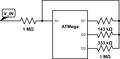 Igazából egyszer úgy is be kell hitelesítened minden méréshatárban, ez a megoldás akár jó is lehet. A védődiódákat viszont ne hagyd ki, mert RESET-kor minden lebeg és ha van 15V a bemeneteden, akkor nem biztos, hogy jót tesz a portoknak (bár az 1Mohm igen csak korlátoz, de nem kockáztatnék)