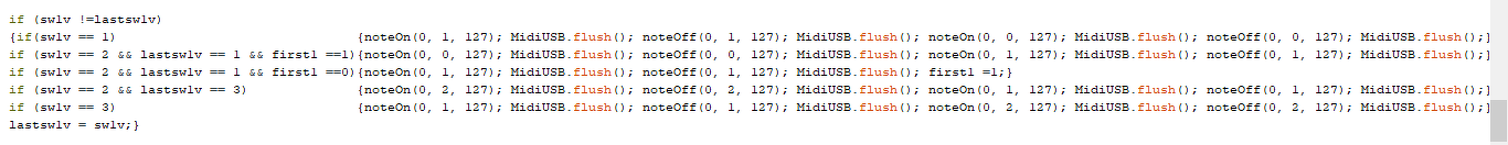 Aztán jön az "else", ha mégsem magas szint, vagyis alacsony, akkor kiküldi az akkordokat. Aztán figyeli, hogy mikor lesz újra magas szint, akkor küldi a note off-okat.
