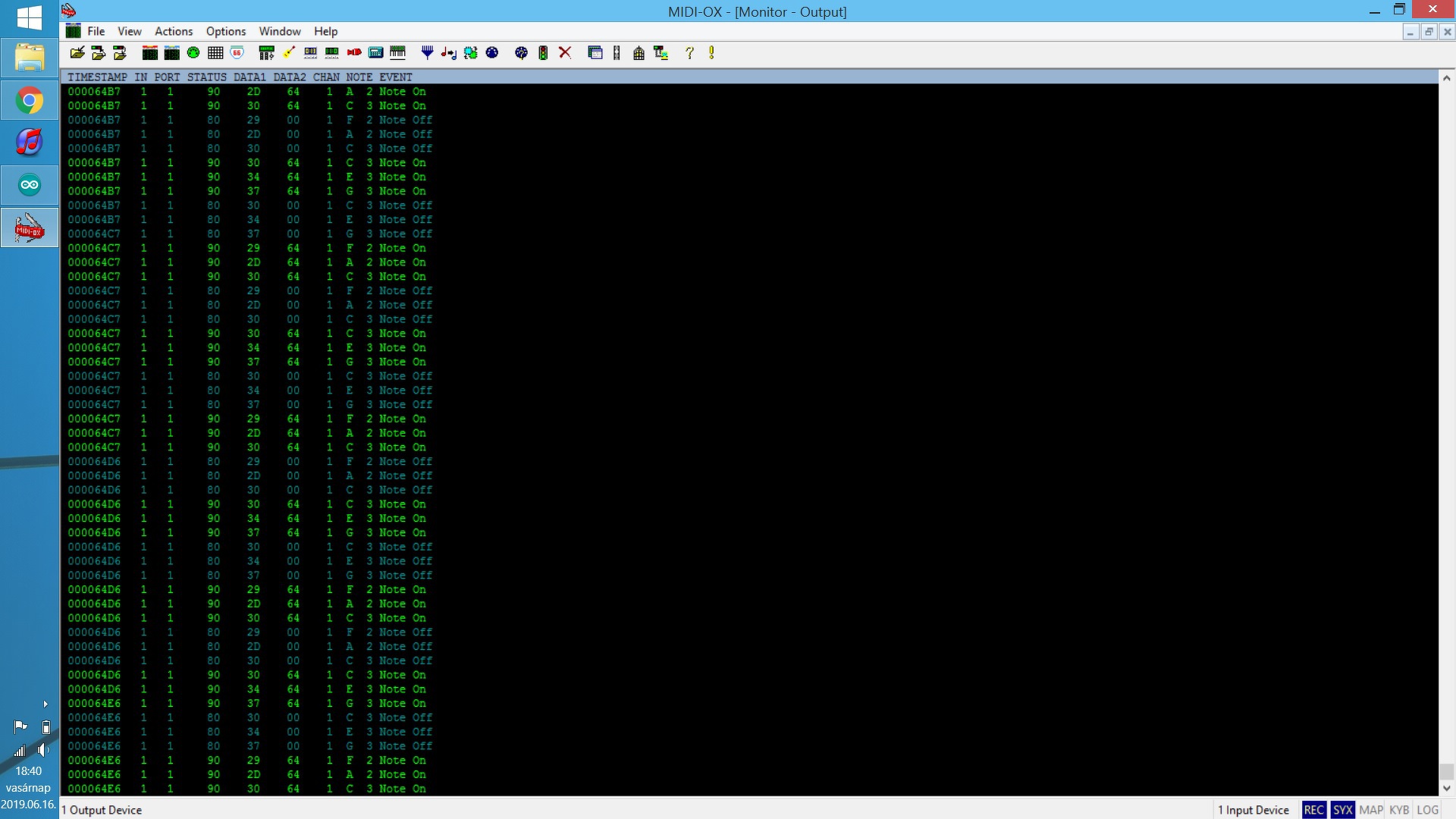 Itt szerintem nem kellene figyelni, hanem alapértelmezetté tenni, hogy mind magas szinten van. Ha valamelyik változna, akkor küldeni a note on-t, ha újra változik, akkor note off.