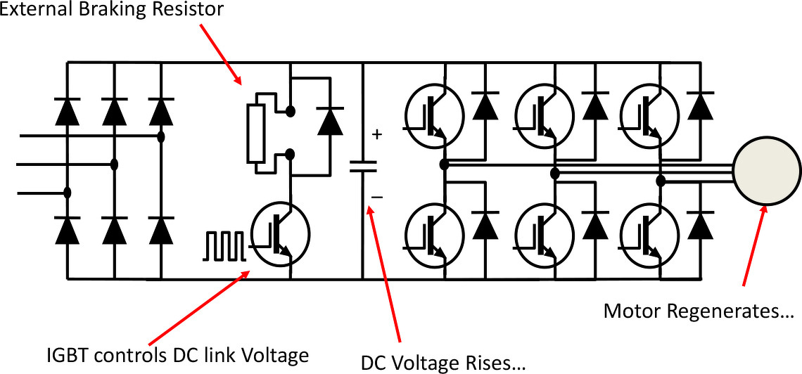 A frekvenciaváltó amikor fékezi a motort, az energiát visszatáplálja a közbenső DC körbe. Ez az energia elkezdi emelni a DC körben lévő kondenzátorokon a feszültséget. Hogy ez ne okozzon bajt, a fék-chopper bekapcsolja a fékellenállást, hogy azon fűtse el a visszatáplált energiát. Nyilván csak addig van bekapcsolva, amíg vissza nem csökkentette a feszültséget a biztonságos tartományba.